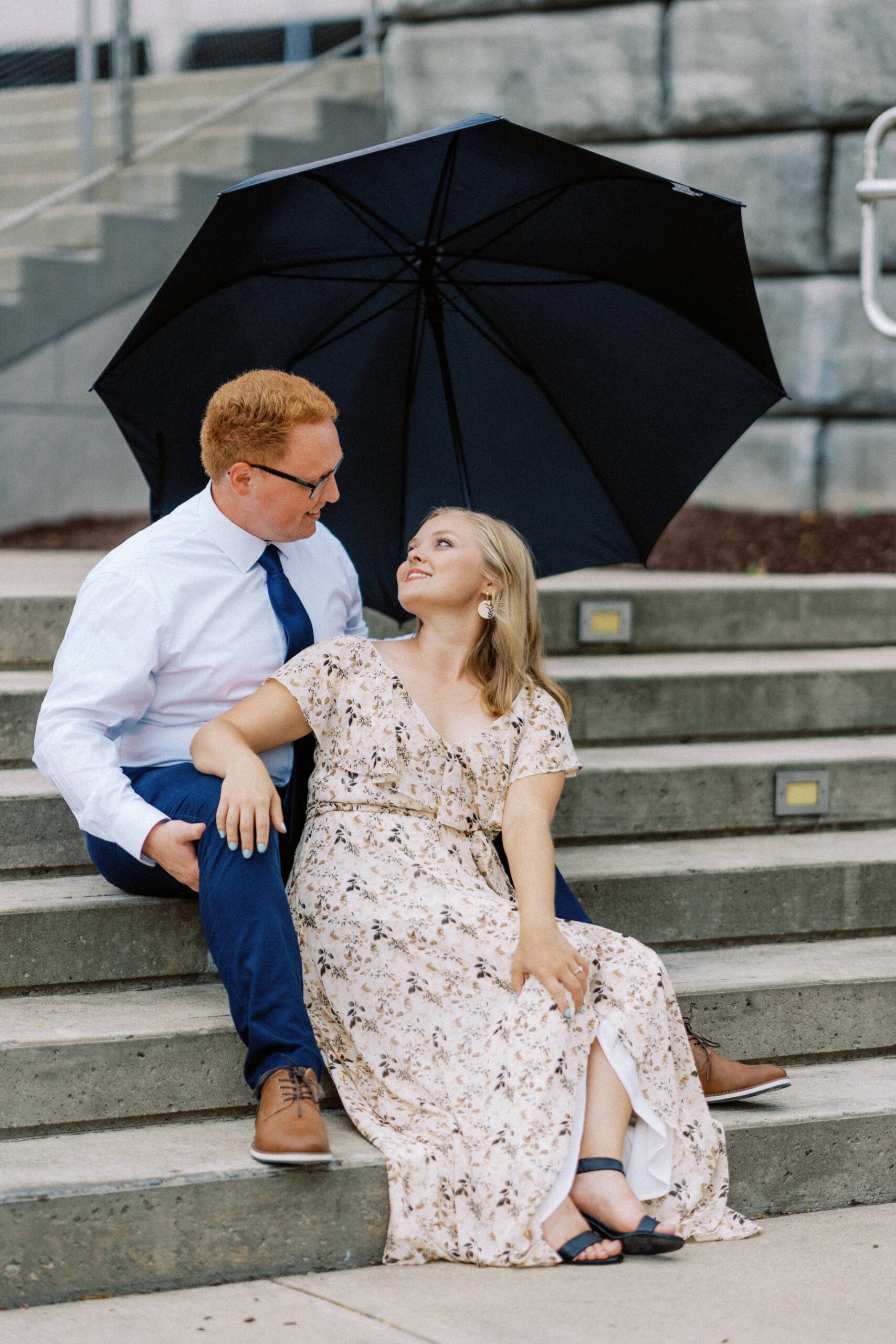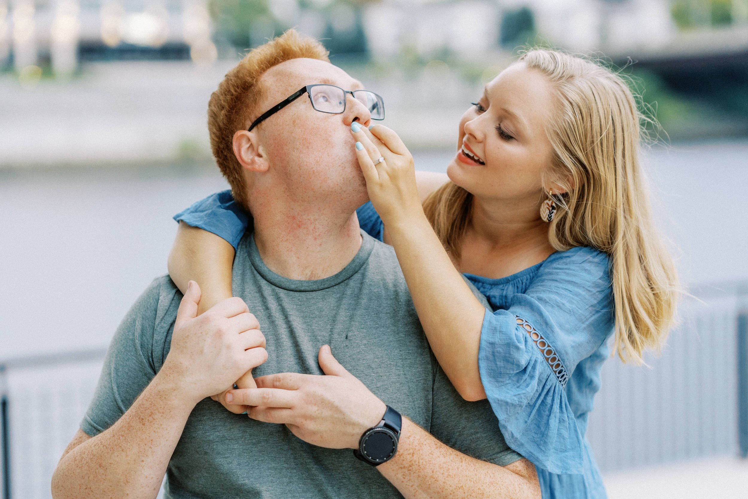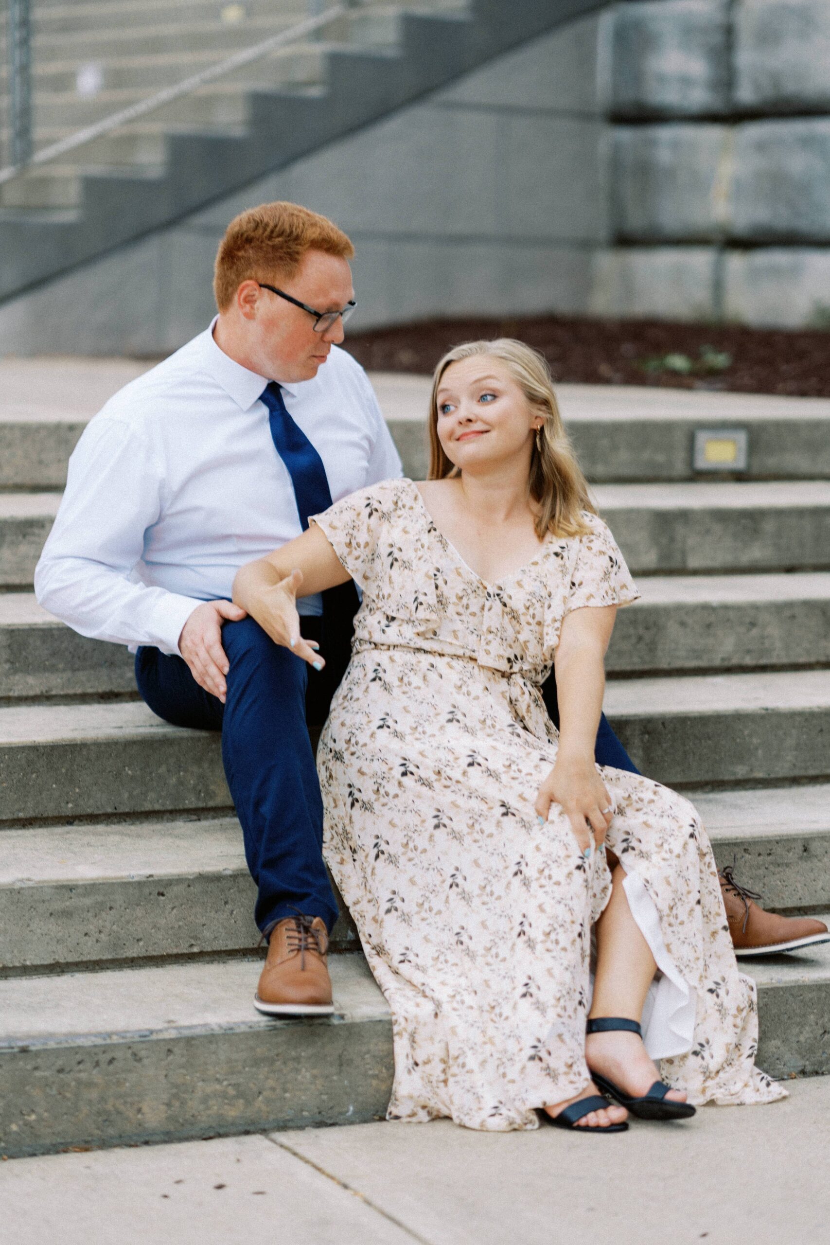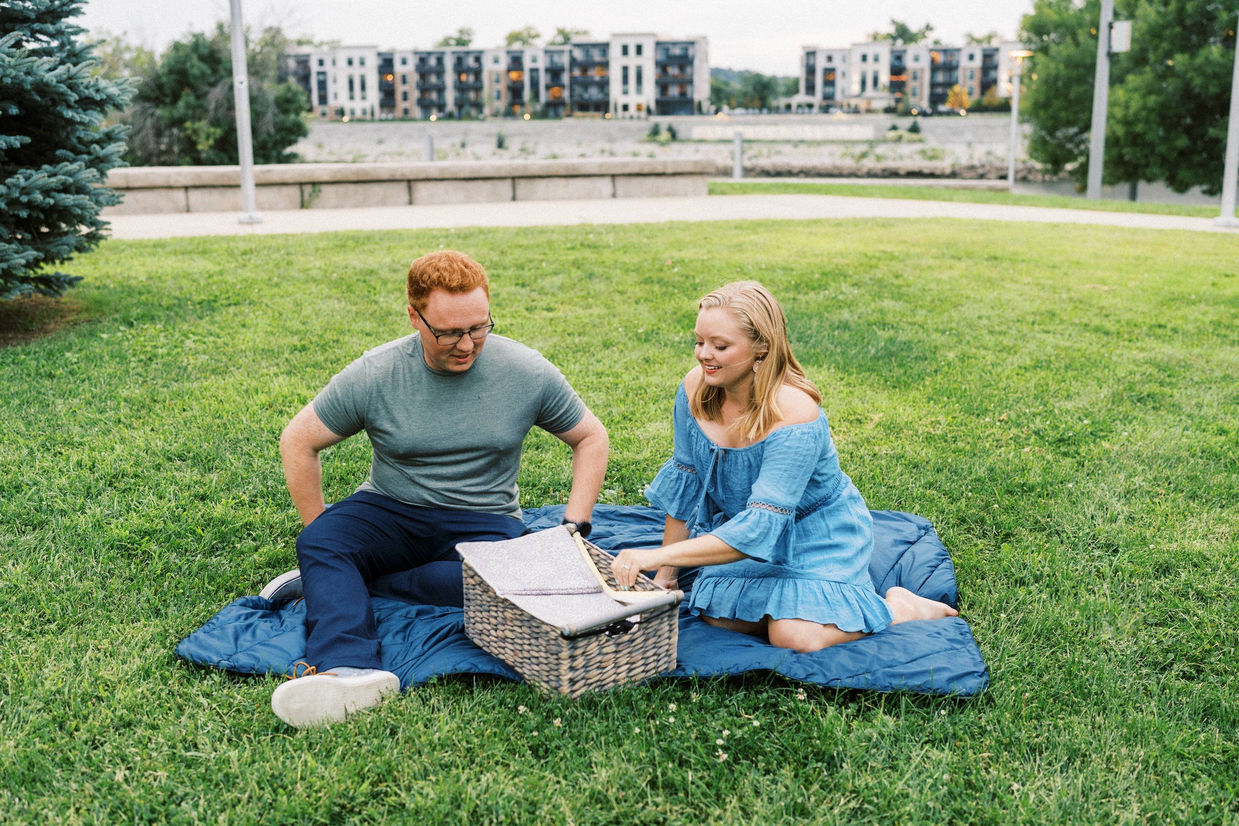 For the second part of their session, we went with something more casual and creative—a painting activity inspired by one of their favorite date nights. After a trip to the car for a quick outfit change, we came back to the park and settled in, Watching them paint together brought out so many genuine moments of laughter and connection. Kyle’s jokes and Taylor’s artistic focus made for the perfect dynamic, and the pops of color from their canvases added a fun, personal touch to the photos. This part of the session wasn’t just about the photos we captured; it was about giving them a chance to pause, play, and enjoy being together. By incorporating an activity that had real meaning for them, we created moments that they’ll look back on as part of their engagement story—not just photos.