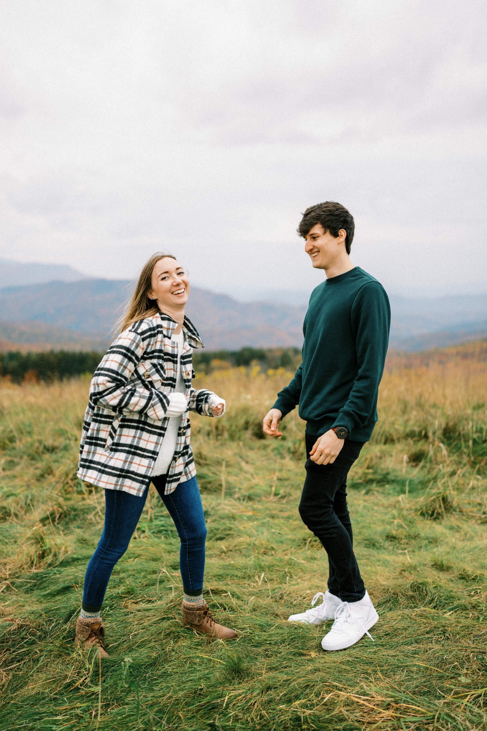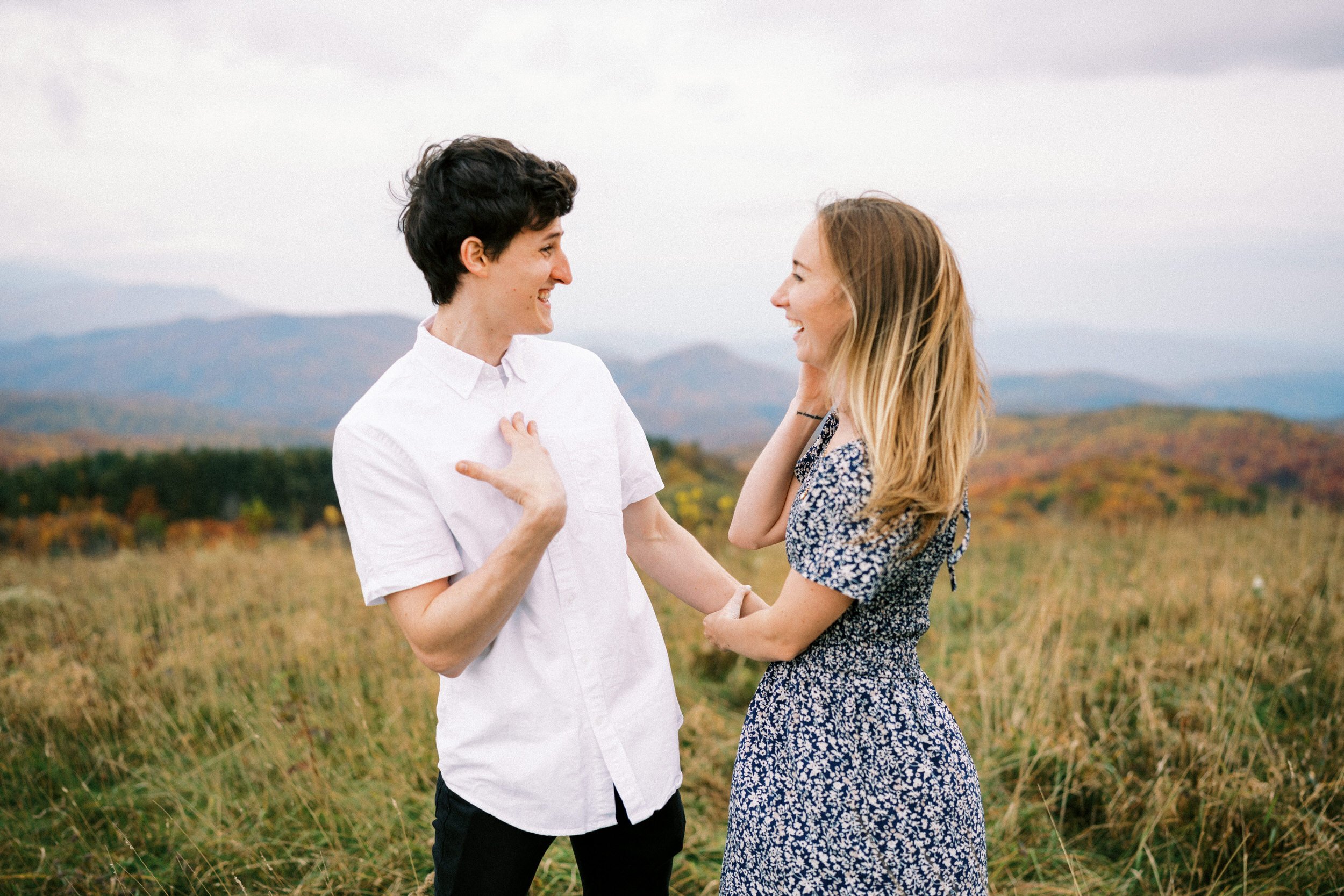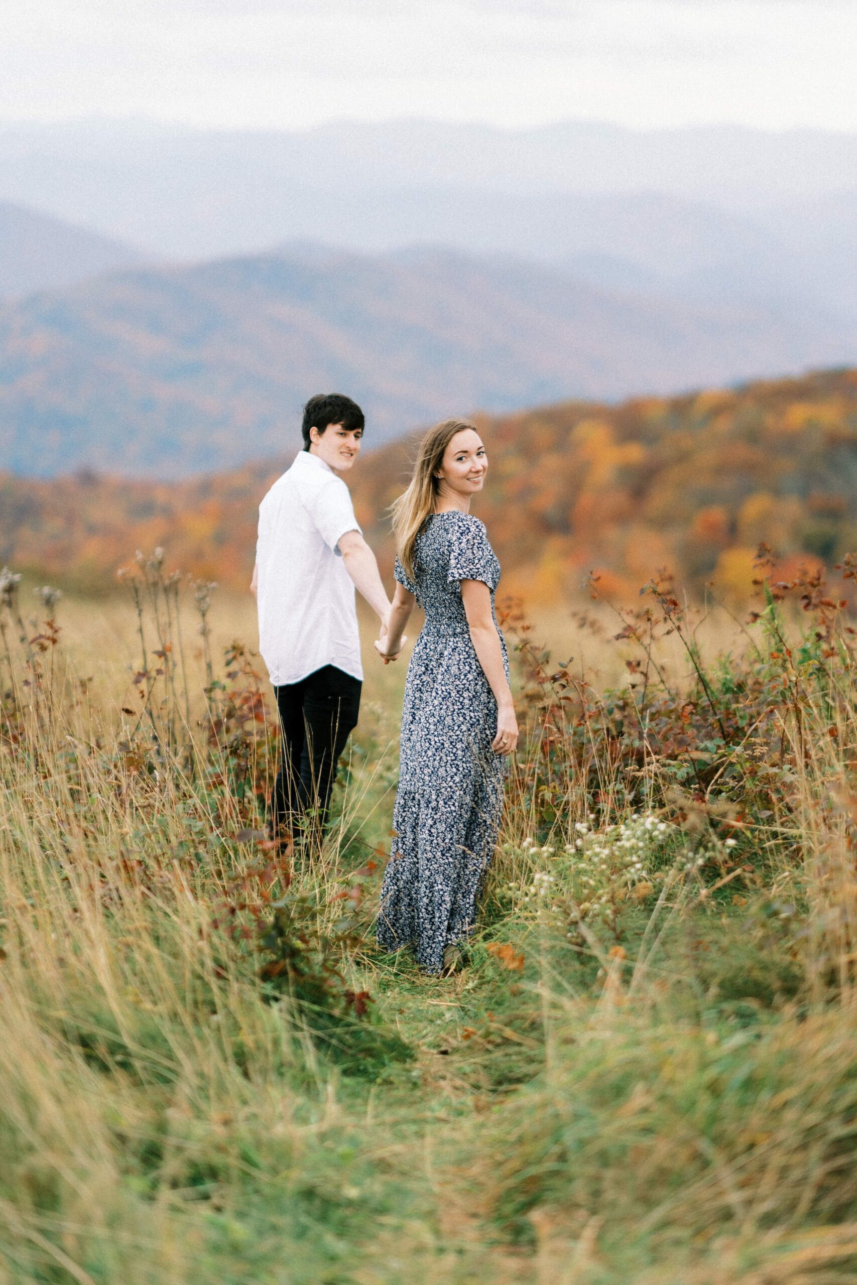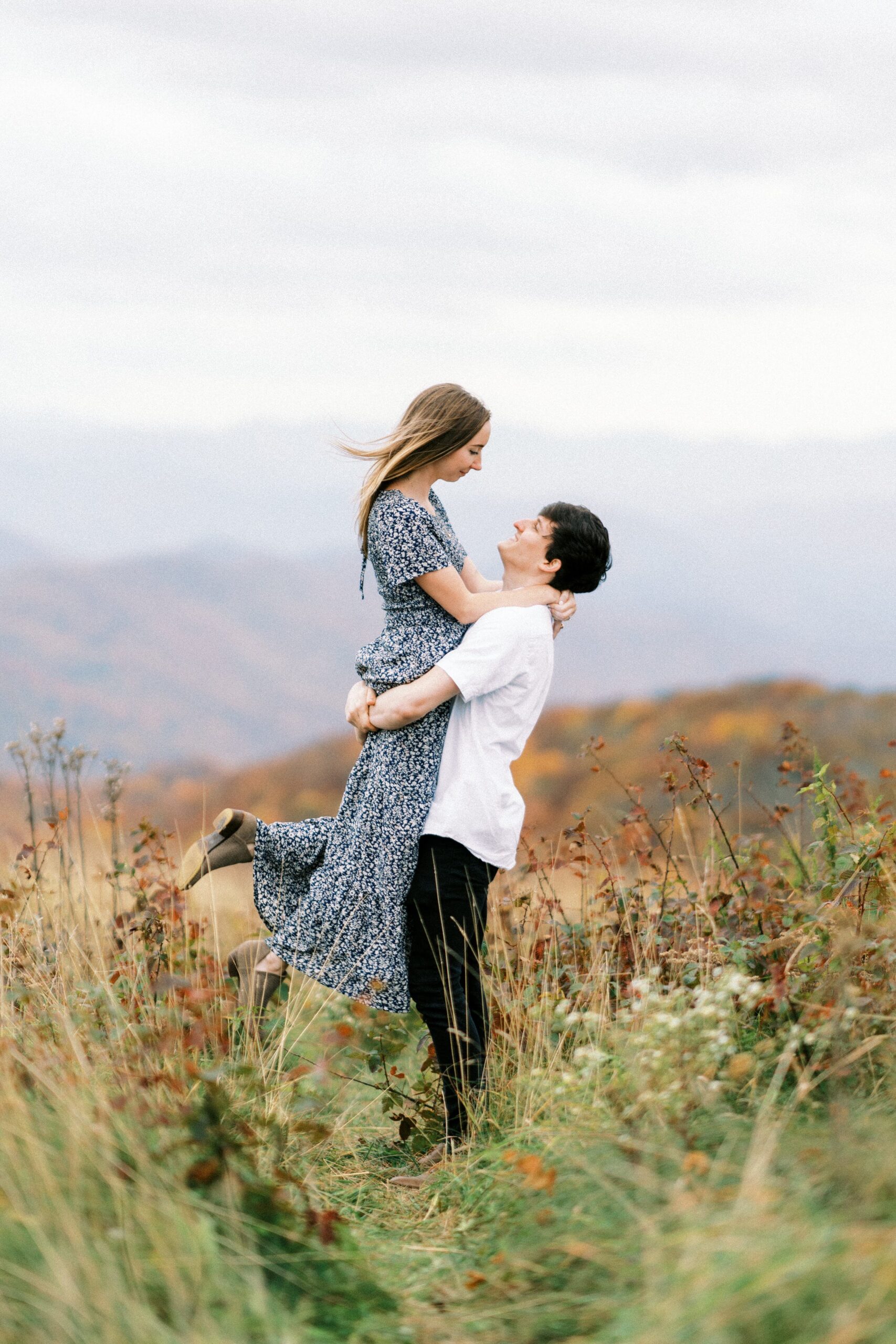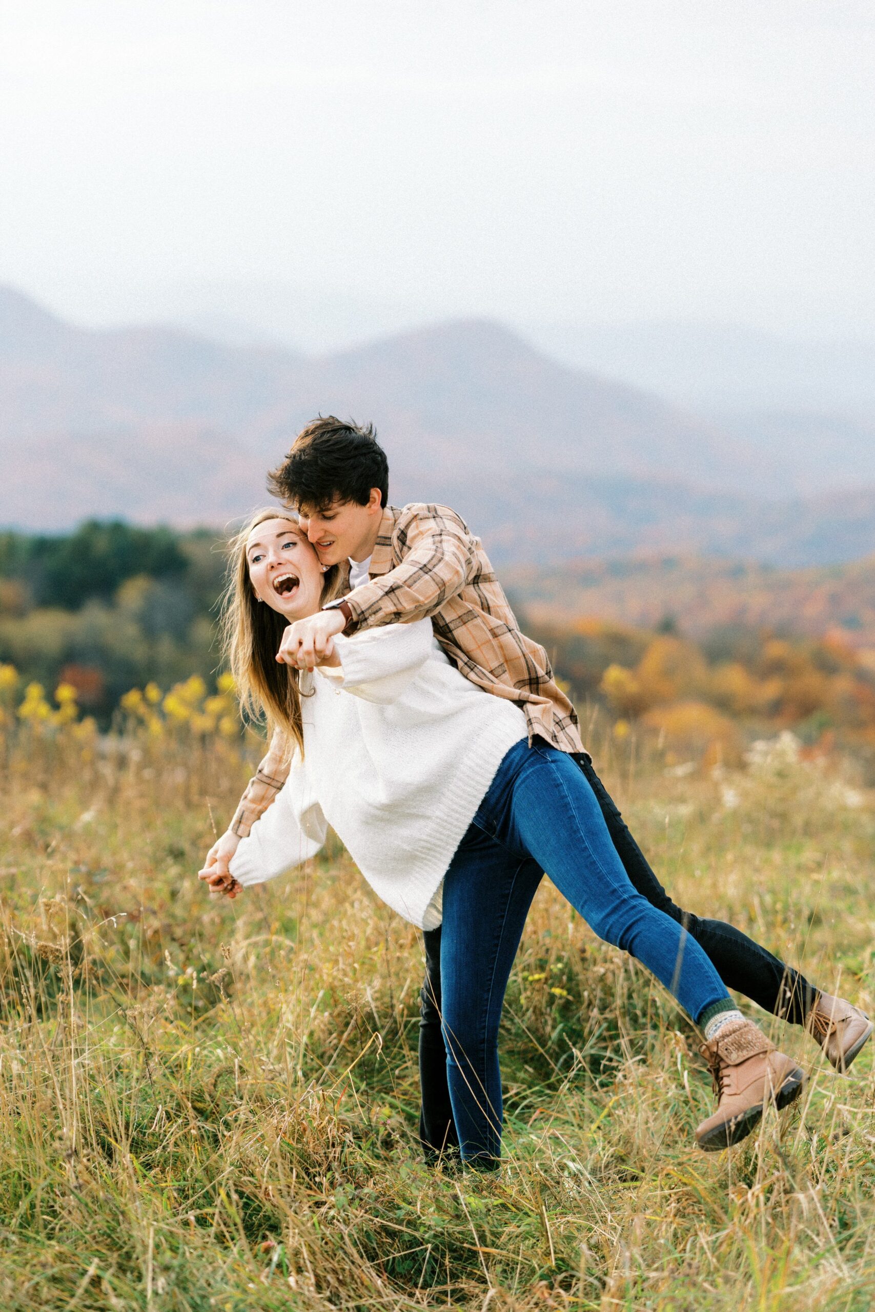 Devon and Mark’s engagement session in the North Carolina mountains was everything you could hope for—breathtaking scenery, vibrant fall colors, and full of laughter and candid moments together. Their love story is full of quirky moments, like a failed camping trip where they ended up at a La Quinta after laughing through their shared misery, and meaningful milestones, like their engagement. Even though Mark’s elaborate plan to propose didn’t go off without a hitch (thanks to canceled flights and alarm mishaps), the moment ended up being perfectly them: heartfelt, full of surprises, and rooted in what matters most.