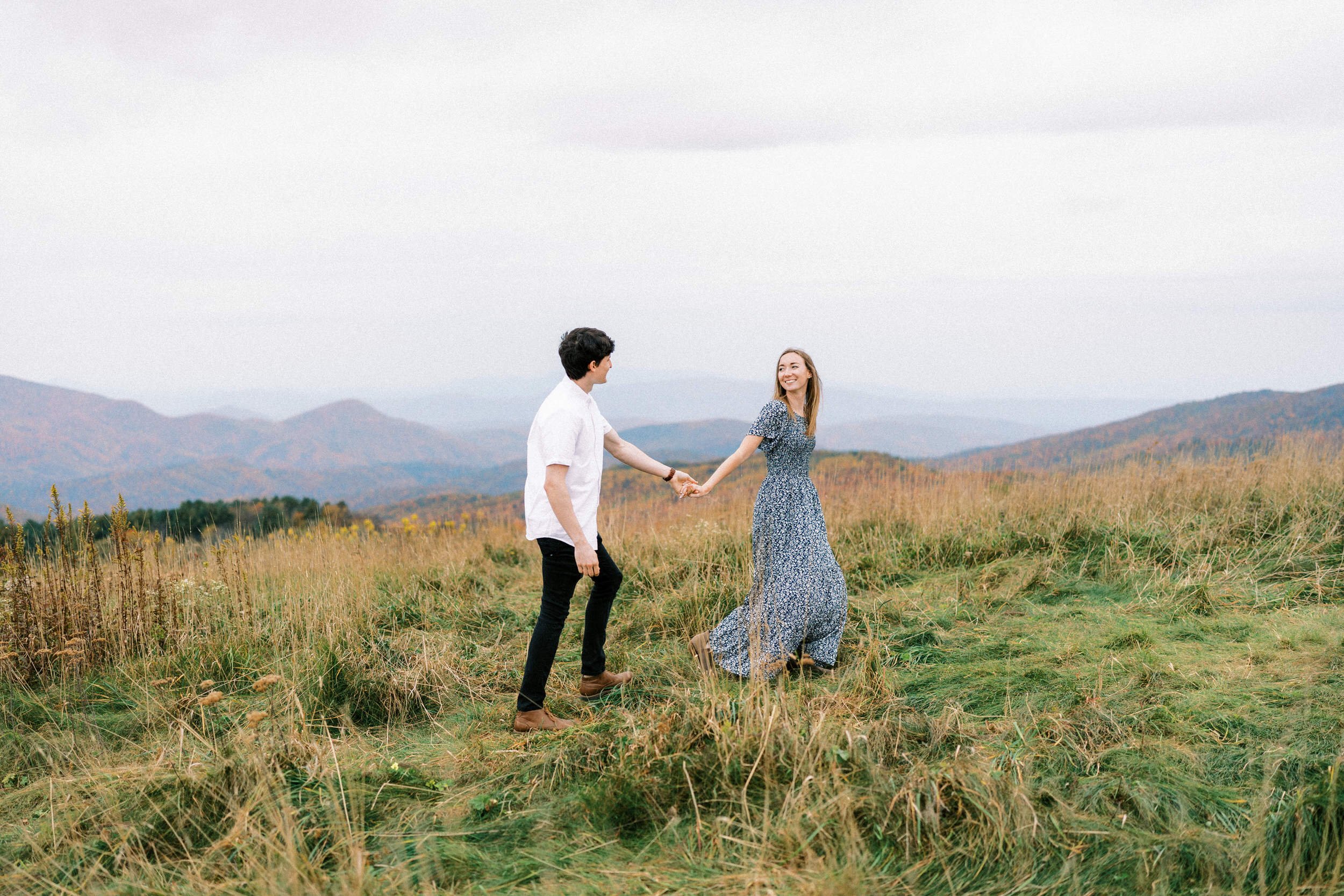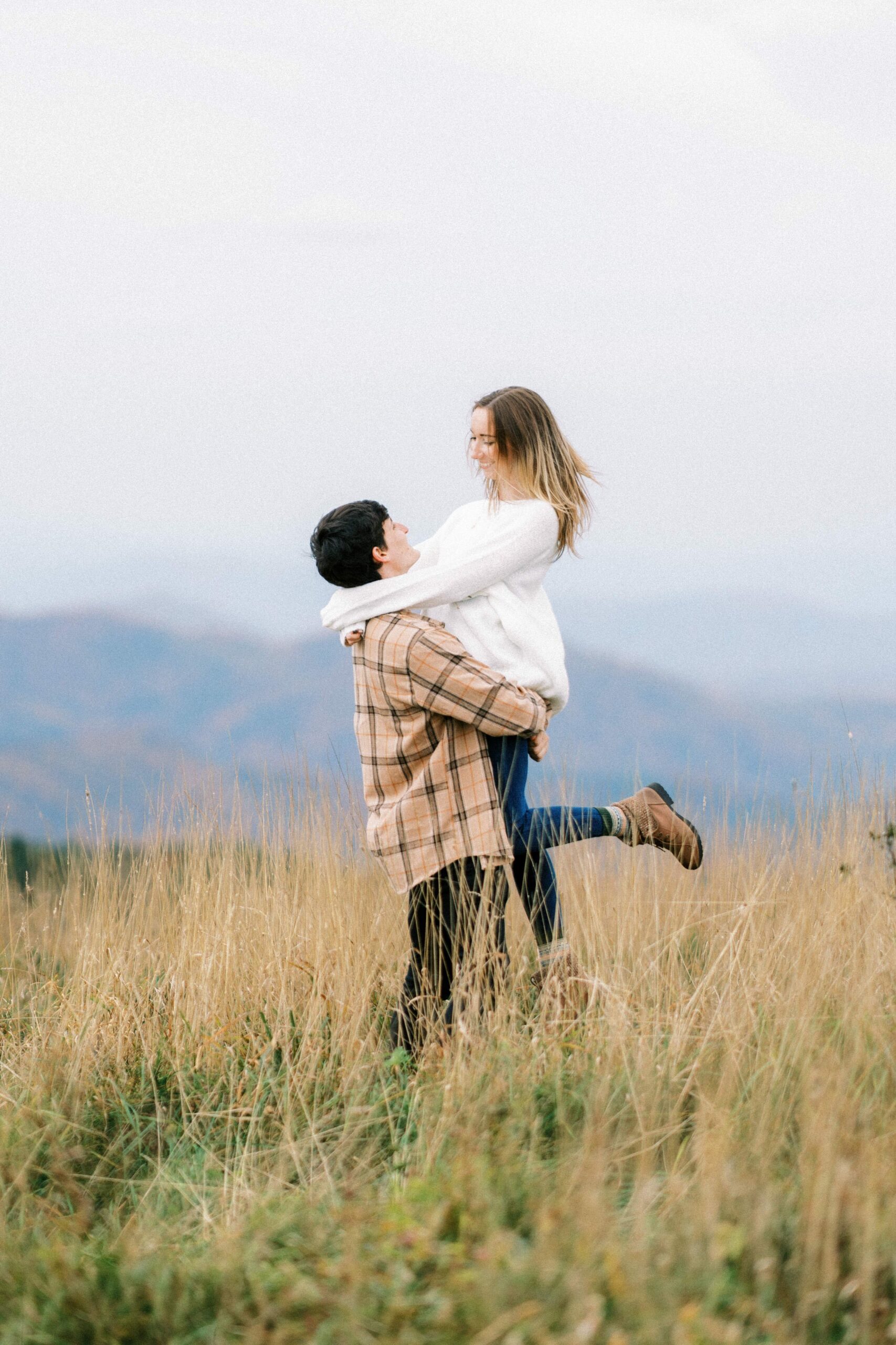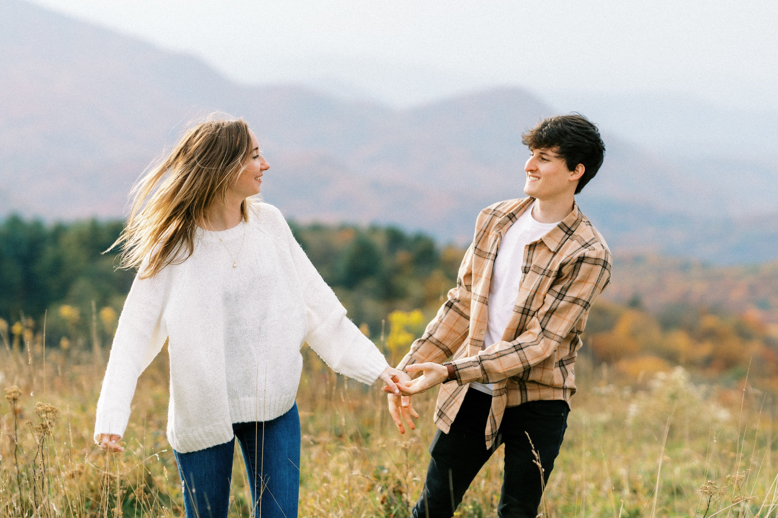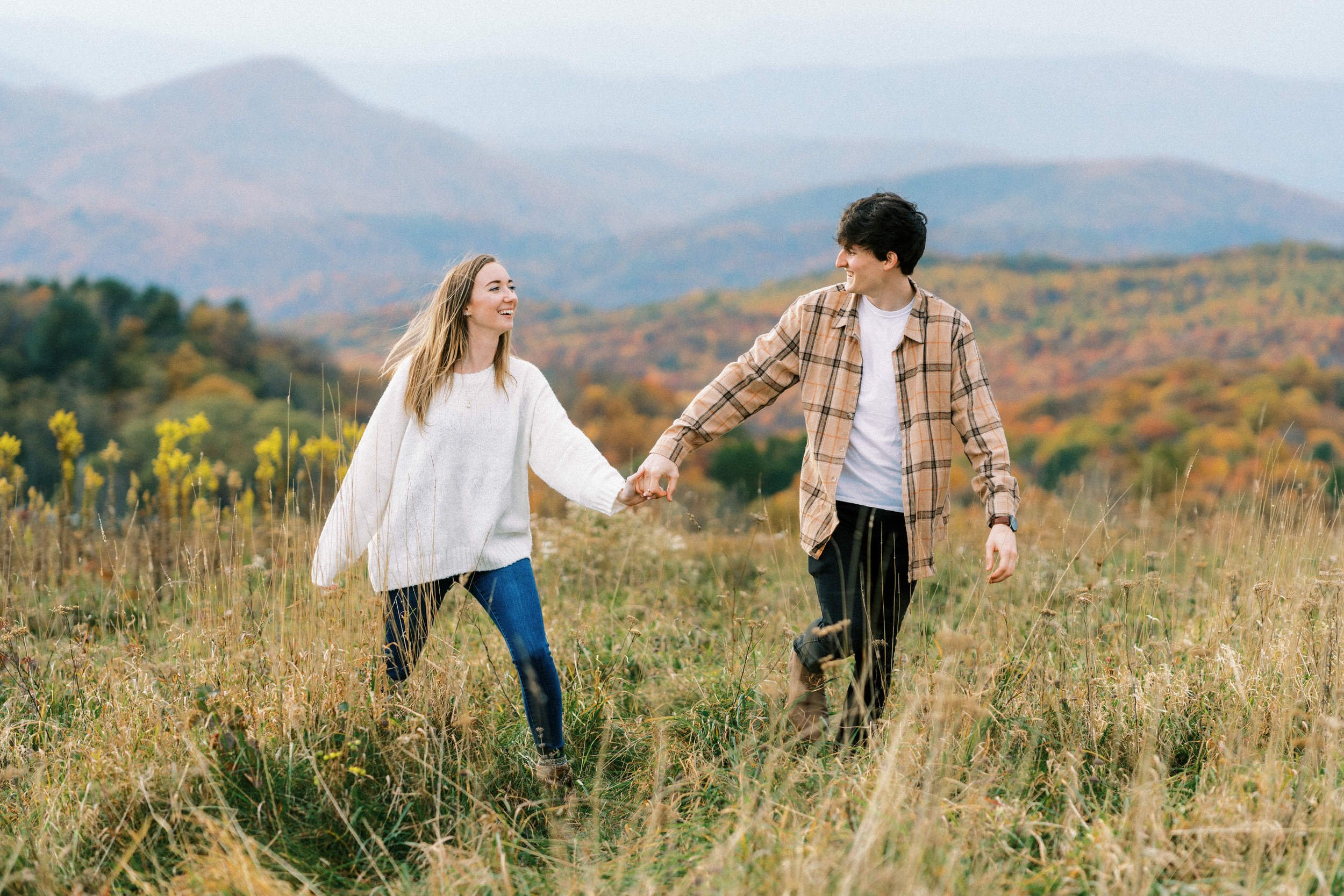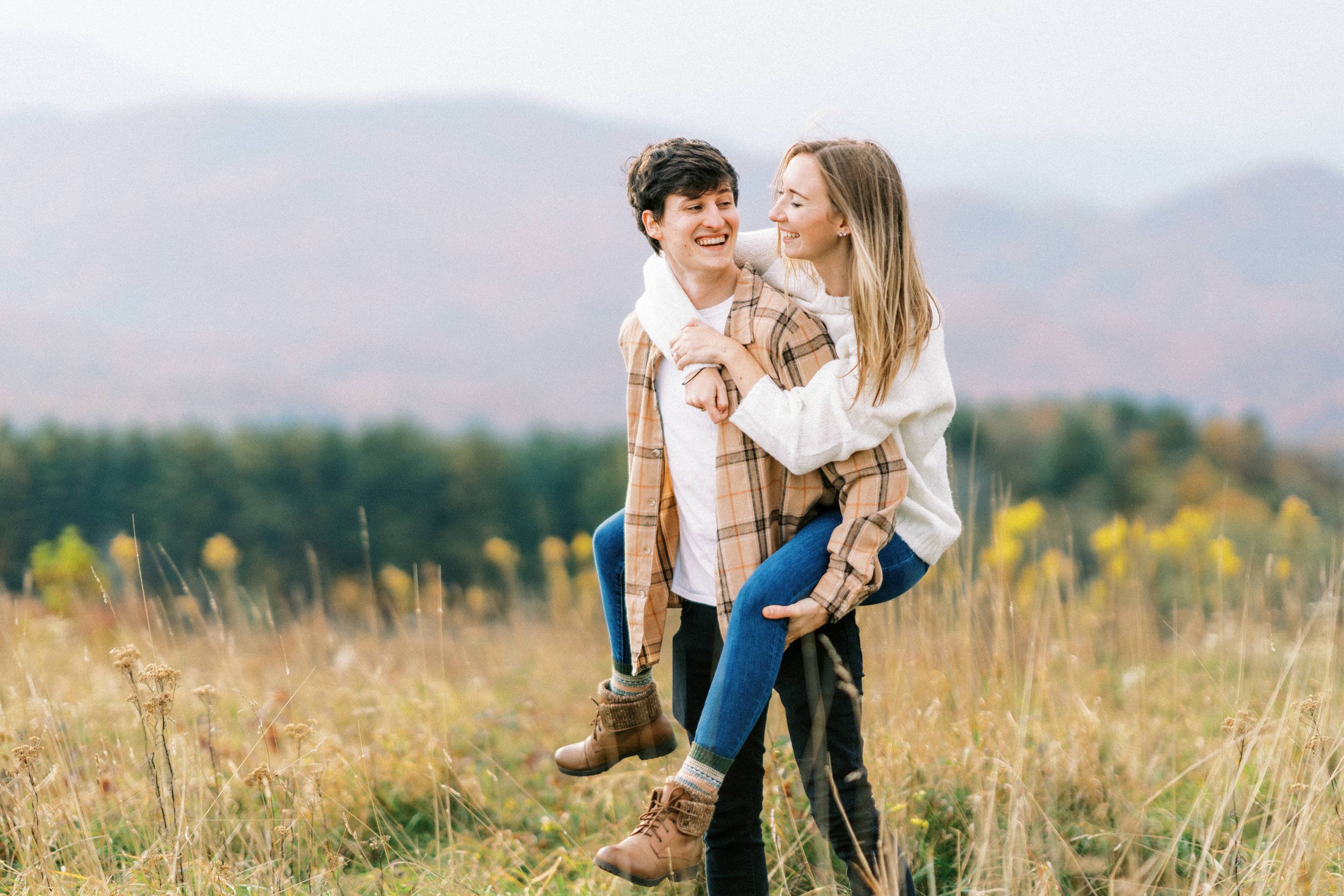Devon and Mark’s engagement session in the North Carolina mountains was everything you could hope for—breathtaking scenery, vibrant fall colors, and full of laughter and candid moments together. Their love story is full of quirky moments, like a failed camping trip where they ended up at a La Quinta after laughing through their shared misery, and meaningful milestones, like their engagement. Even though Mark’s elaborate plan to propose didn’t go off without a hitch (thanks to canceled flights and alarm mishaps), the moment ended up being perfectly them: heartfelt, full of surprises, and rooted in what matters most.