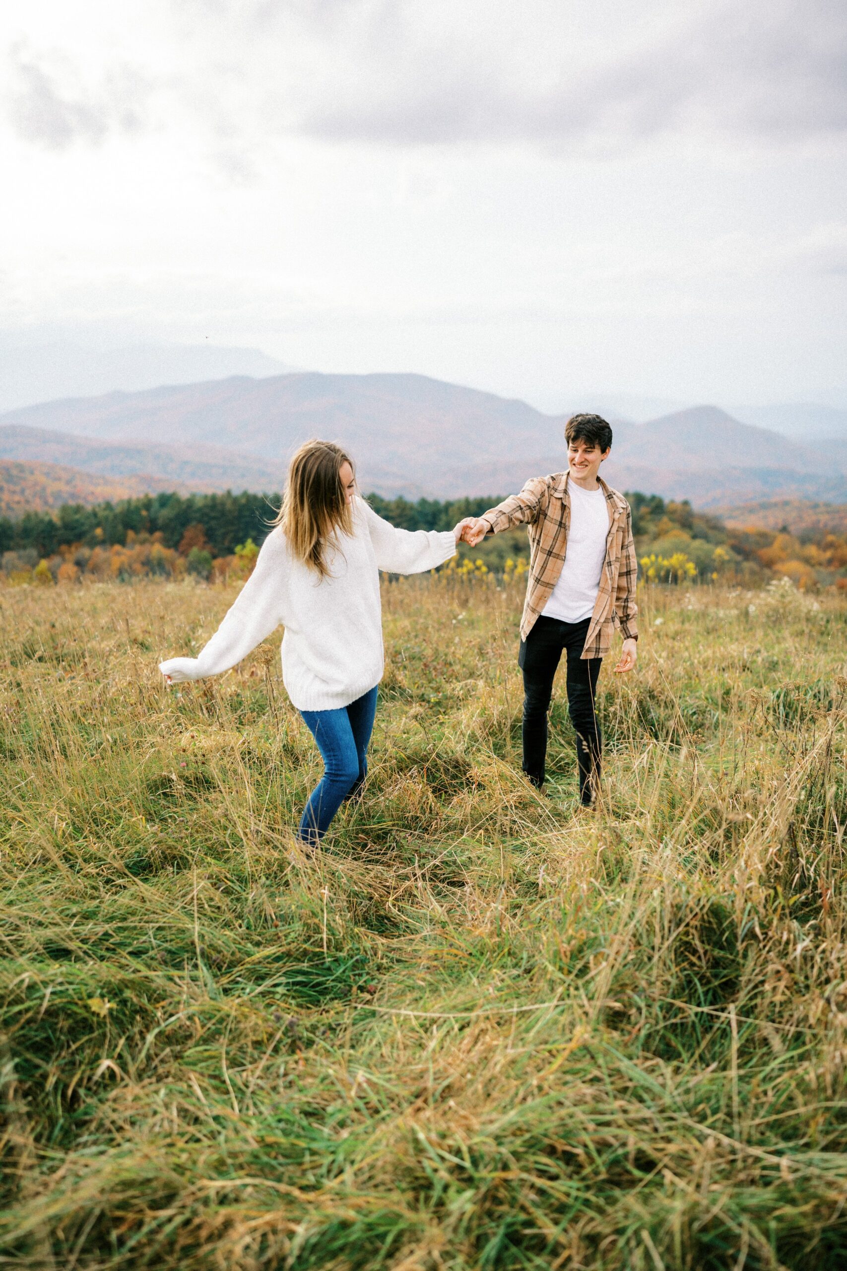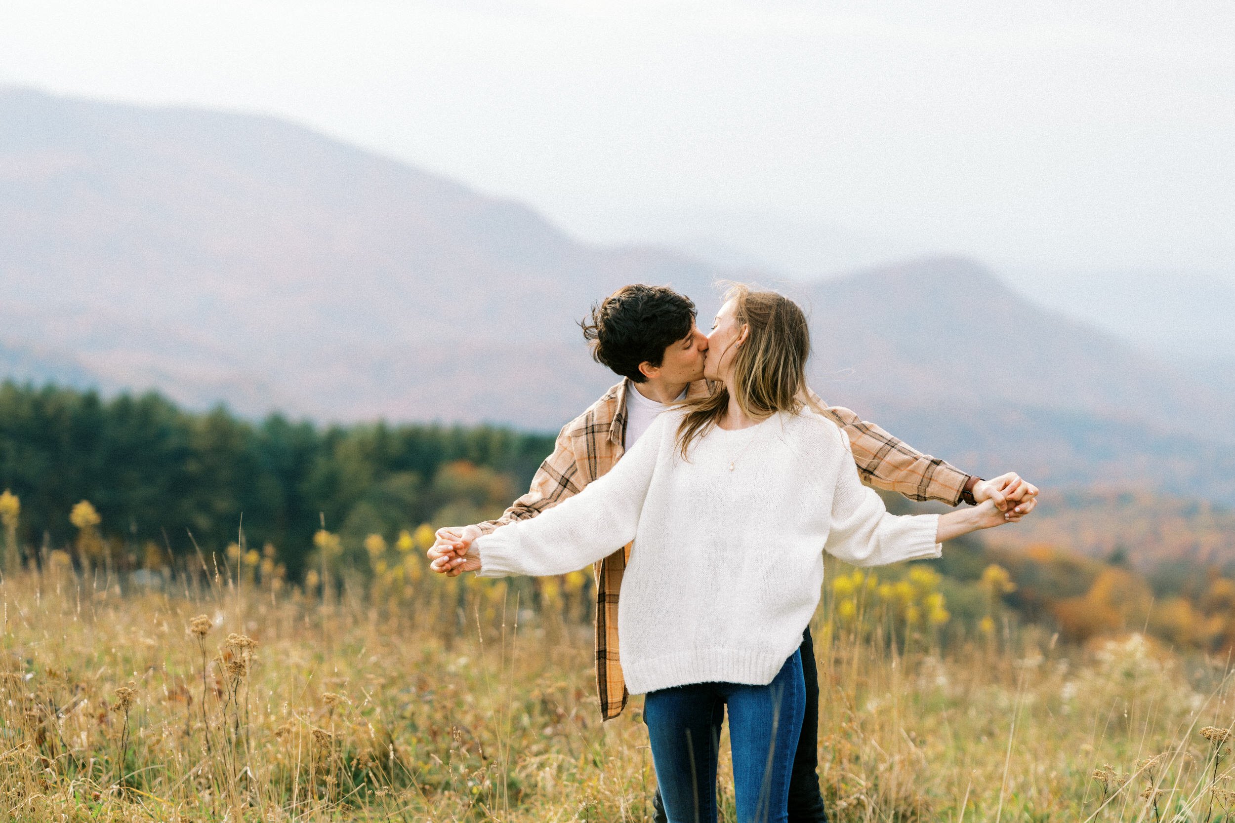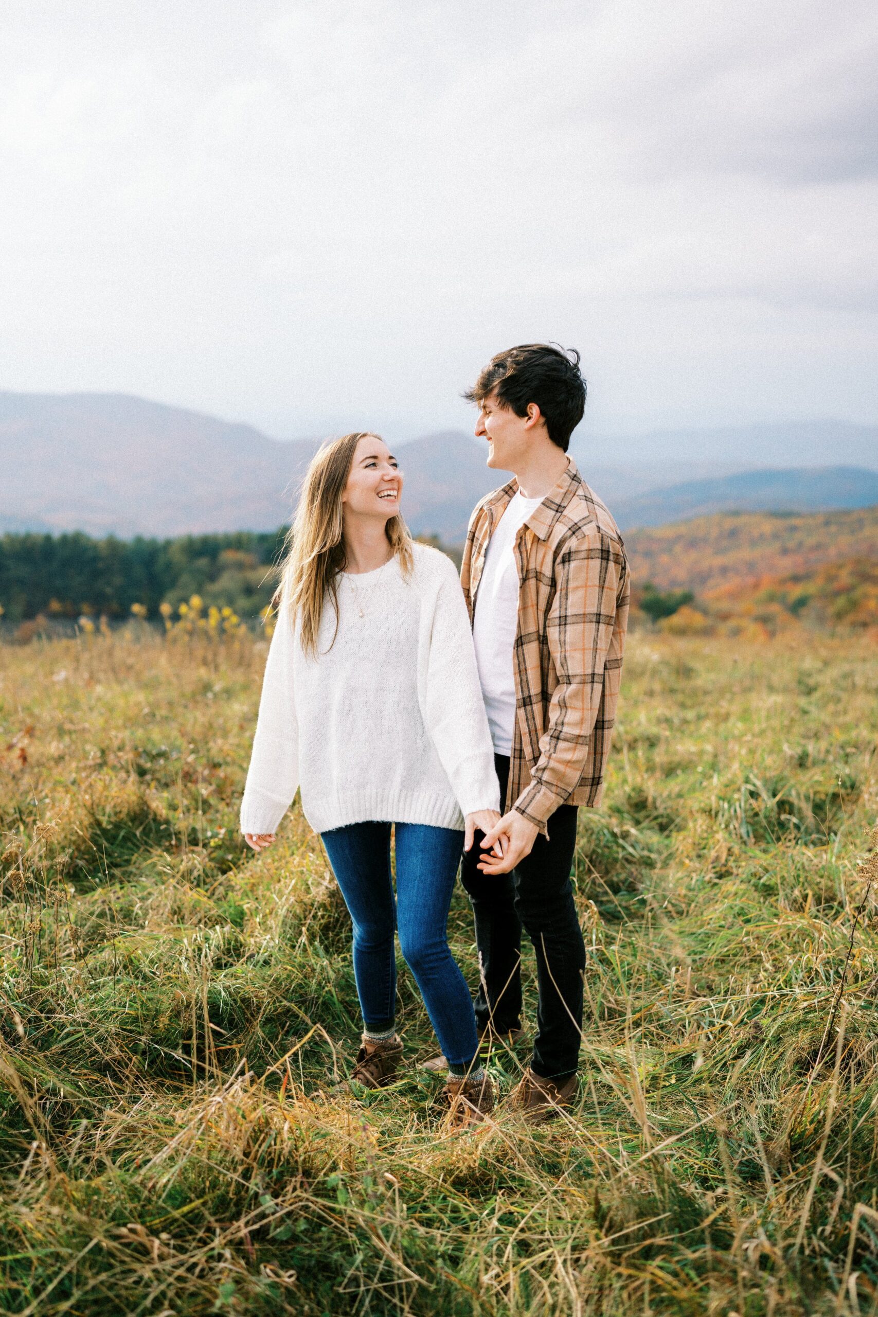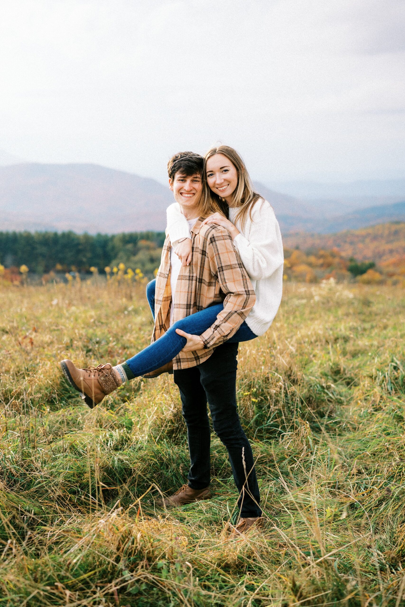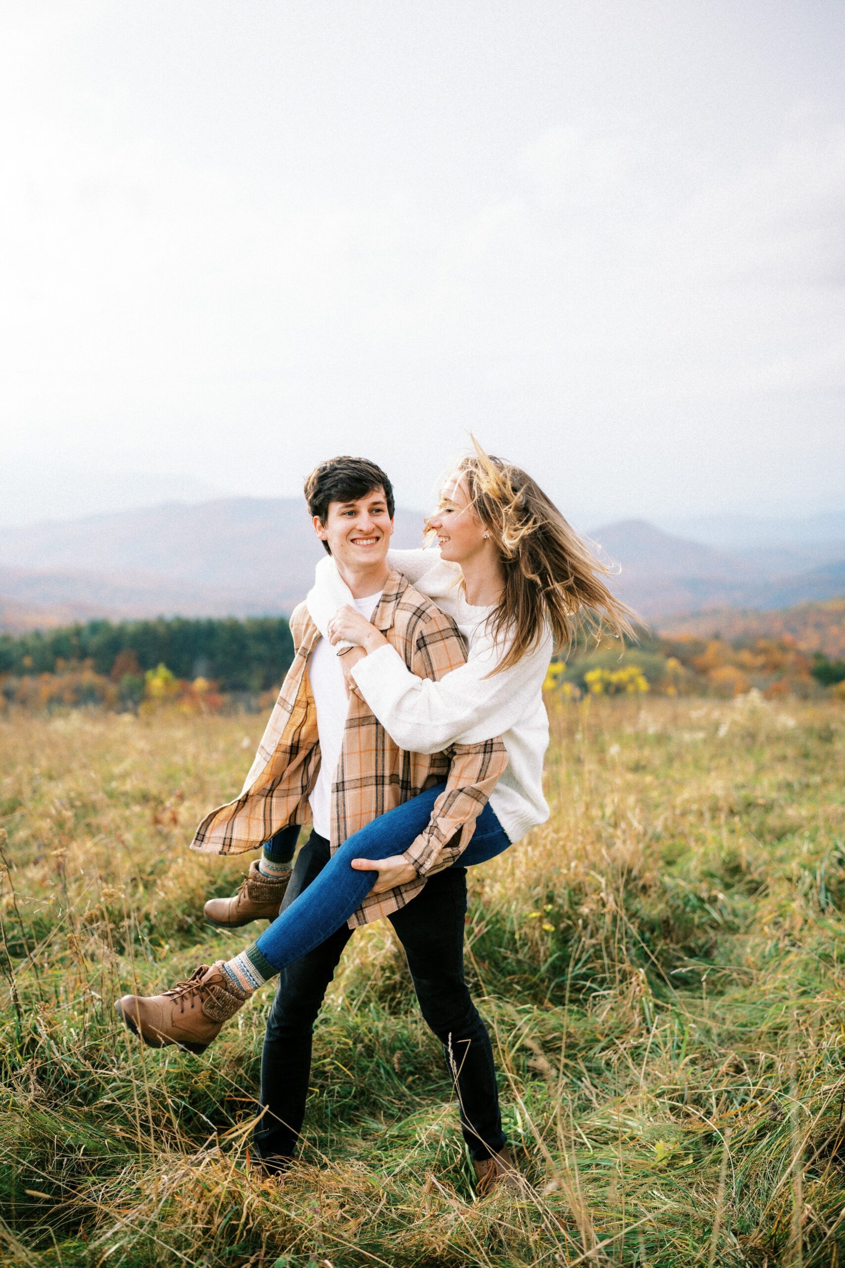 Devon and Mark’s engagement session in the North Carolina mountains was everything you could hope for—breathtaking scenery, vibrant fall colors, and full of laughter and candid moments together. Their love story is full of quirky moments, like a failed camping trip where they ended up at a La Quinta after laughing through their shared misery, and meaningful milestones, like their engagement. Even though Mark’s elaborate plan to propose didn’t go off without a hitch (thanks to canceled flights and alarm mishaps), the moment ended up being perfectly them: heartfelt, full of surprises, and rooted in what matters most.