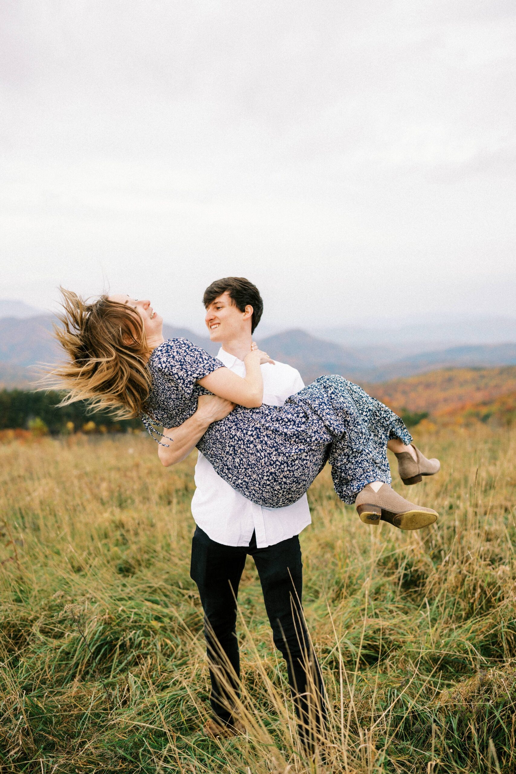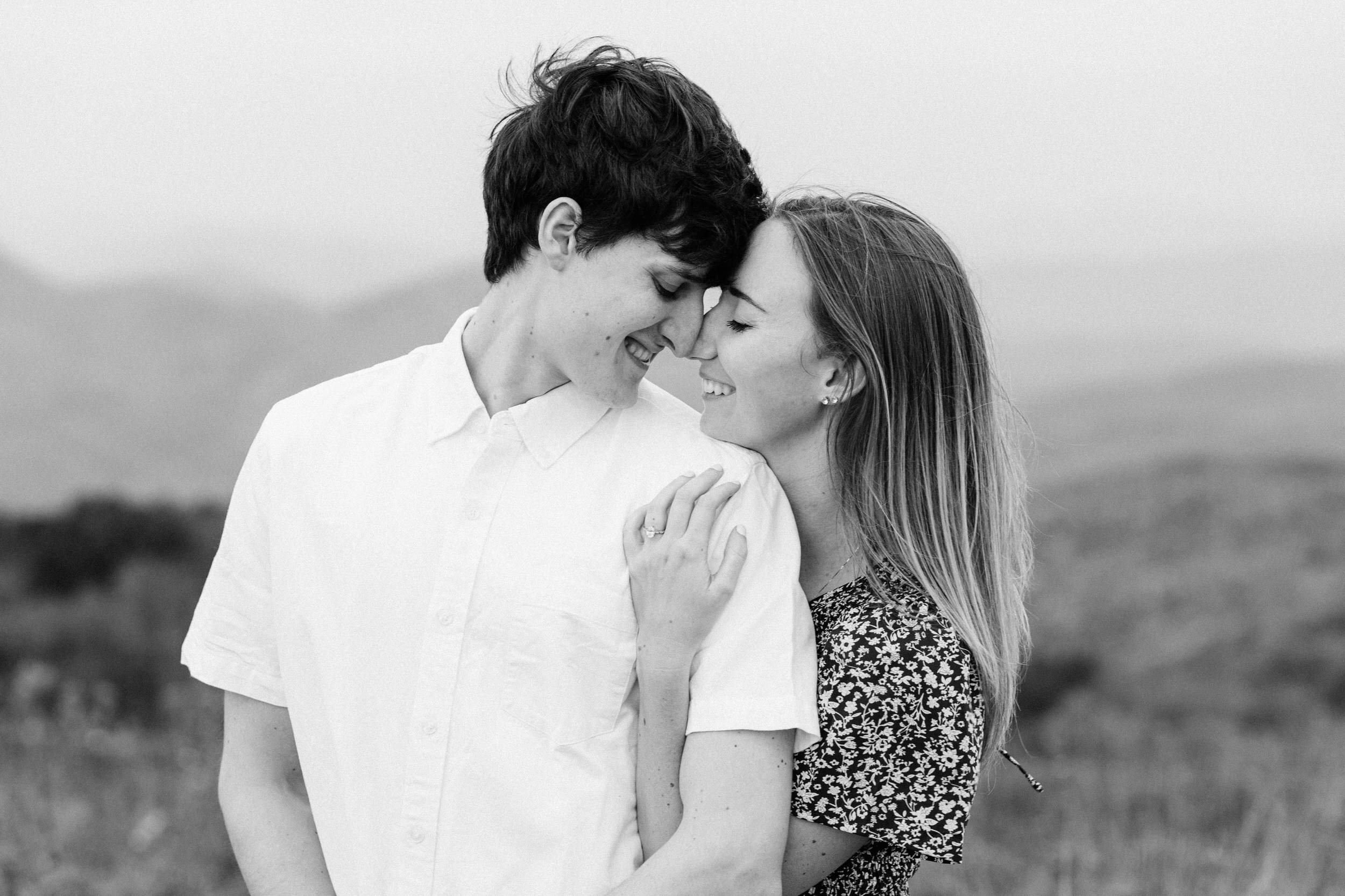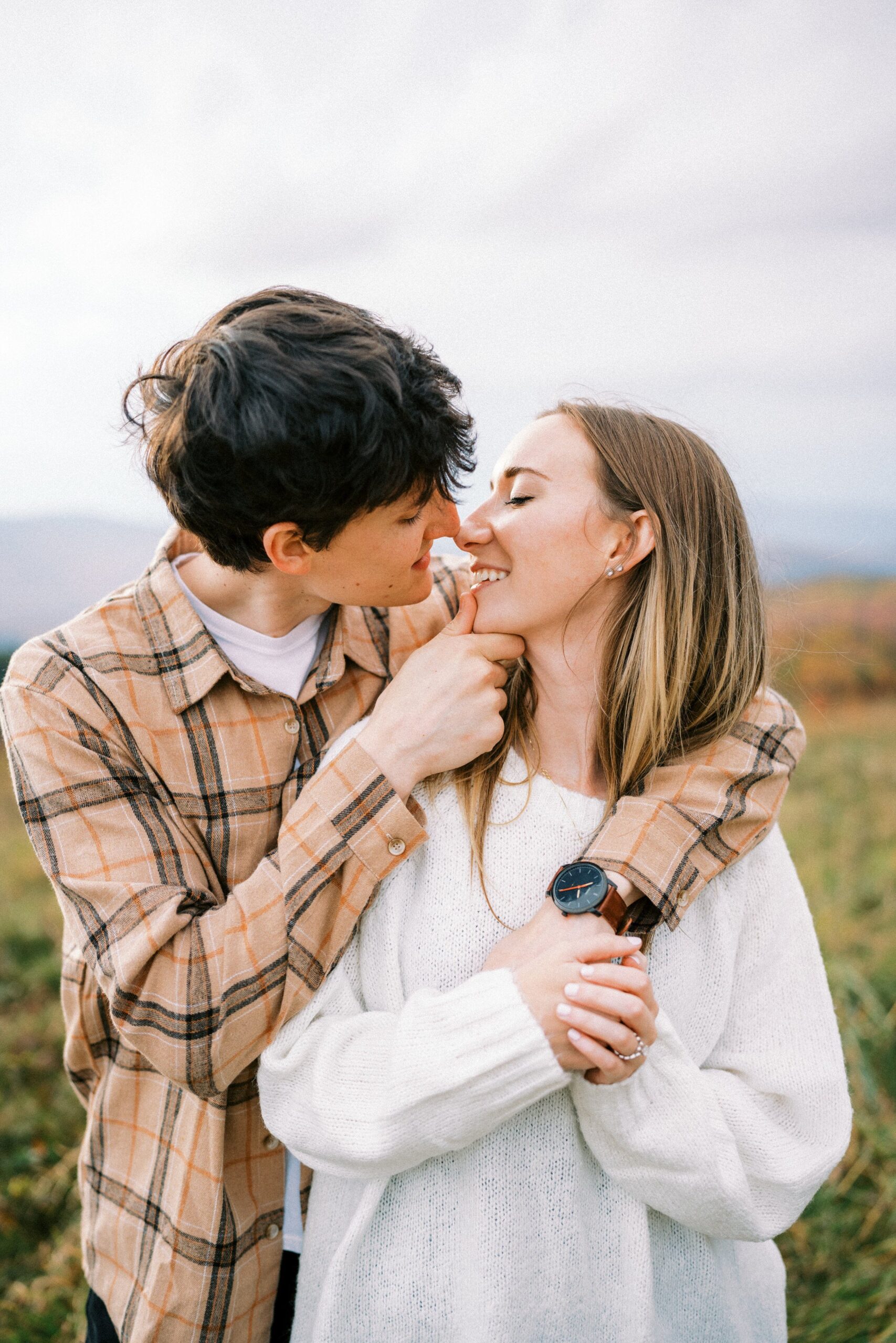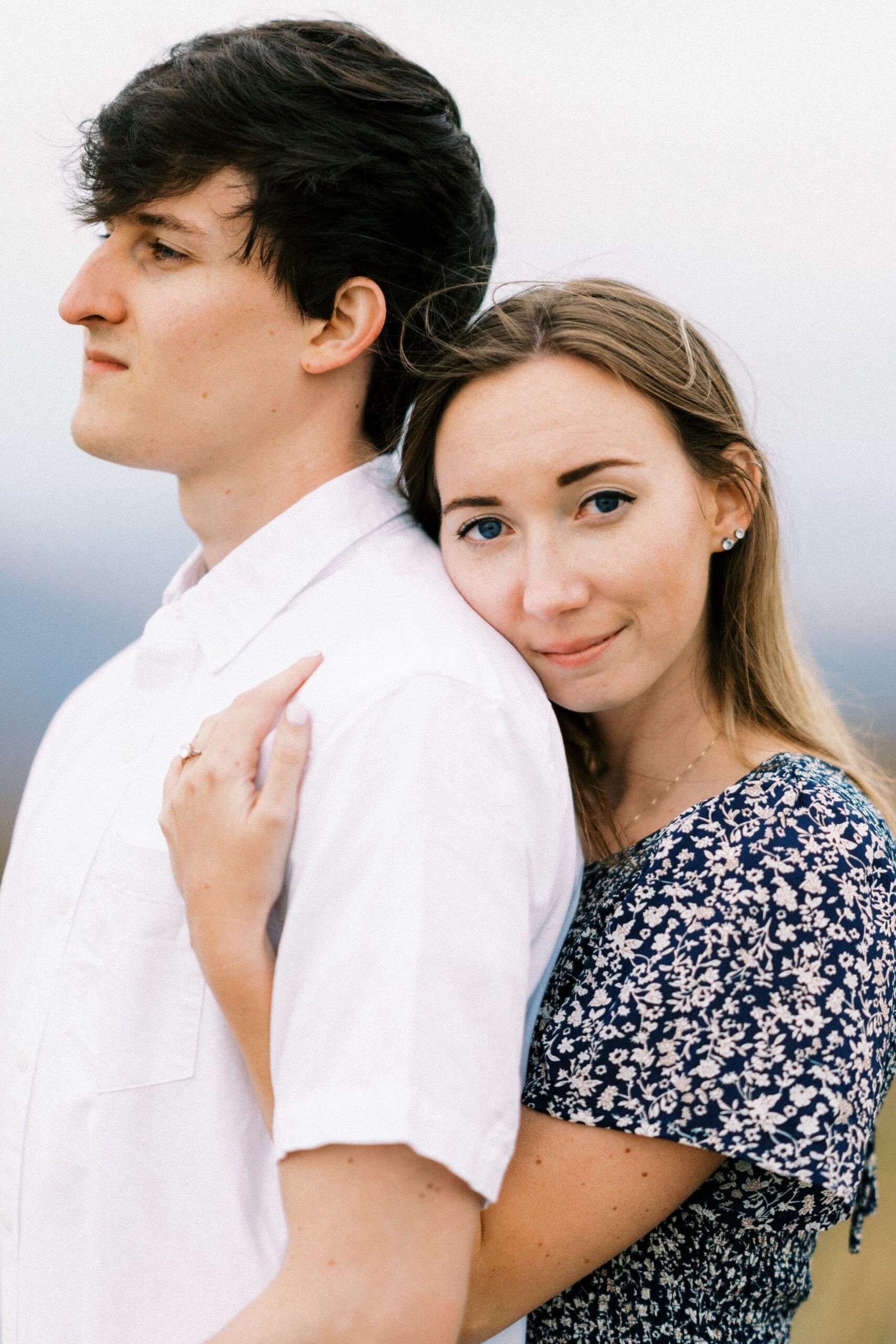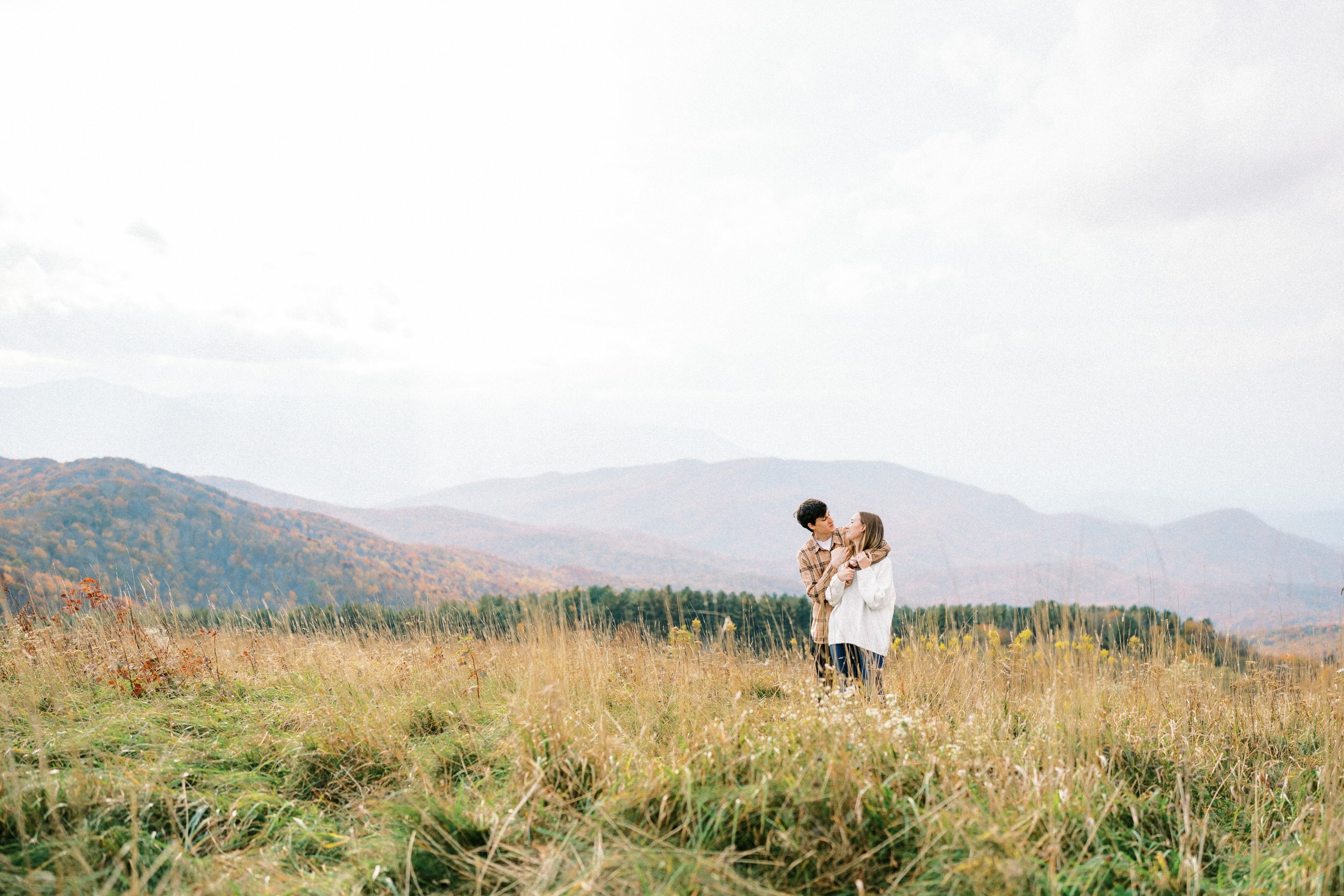 We chose the NC mountains for their photos as a way to celebrate this new chapter in their lives together. With Devon originally from San Antonio and Mark from Pittsburgh, they’ve built their relationship across states and cities, ultimately putting down roots in Charlotte. The mountains felt like the perfect way to show off their new home in North Carolina—a place that beautifully represents the next step in their journey as a couple and the life they’re building together.
