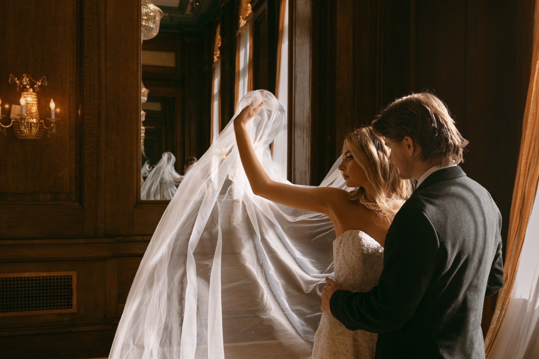 Editorial wedding photography, another staple of the luxury industry, is defined by a creative, fashion-forward approach, resulting in images that feel like they belong in the pages of Vogue. Using striking compositions, bold poses, and intentional use of artificial light, this style is dramatic and captivating. Editorial photographers take a more hands-on approach, directing their subjects to craft images with a balance between storytelling and artistry. The final images radiate sophistication and high-fashion allure, making this style a favorite for couples seeking a bold, luxurious aesthetic.