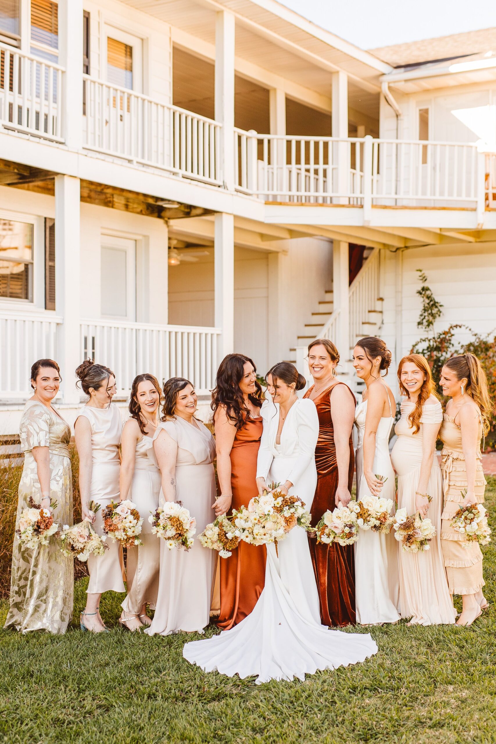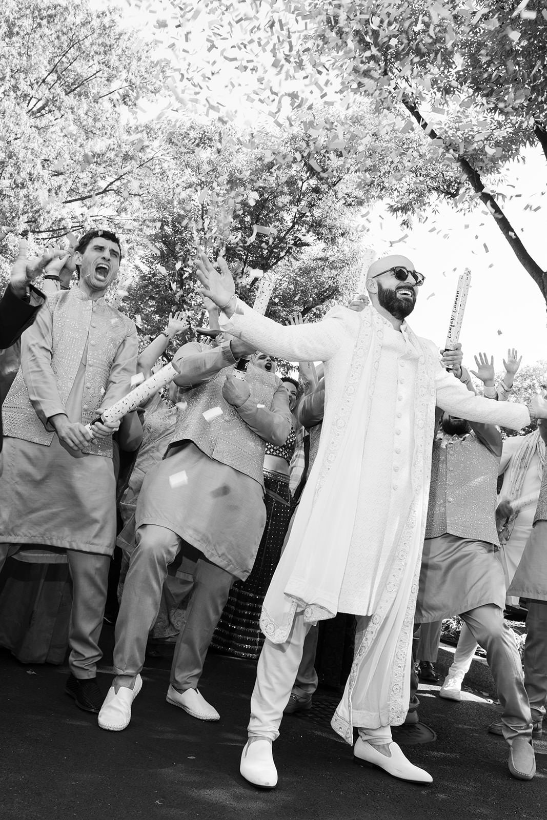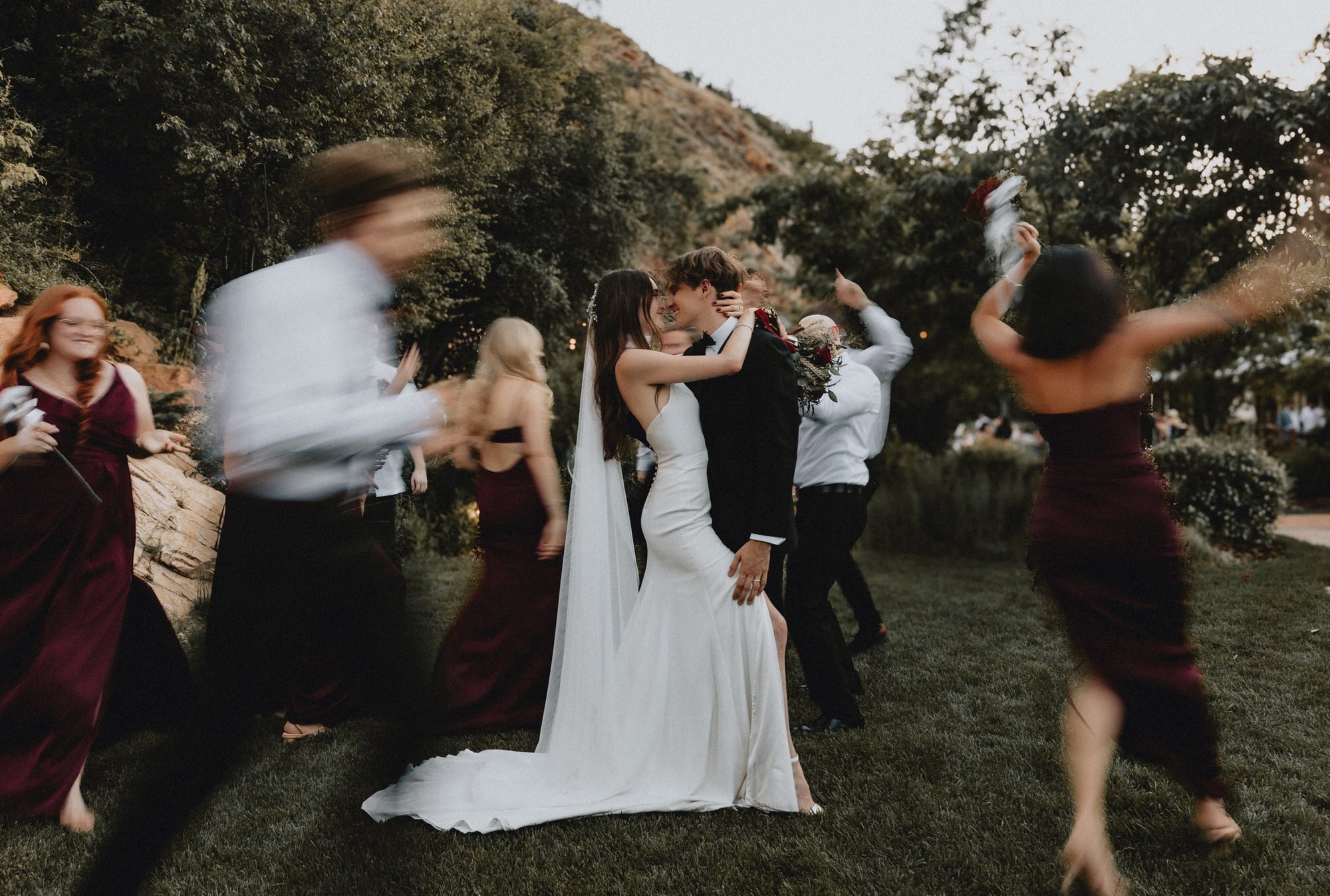 Dense composition is a style that relies on both the couple and the photographer to create images that feel full, layered, and dynamic. This style features overlapping elements, multiple points of interest, and a sense of organized chaos, drawing the eye through the frame in an intentional way. It works best in visually rich settings, such as packed dance floors, crowded getting-ready rooms, or receptions with layered décor and textures. When done well, dense composition results in photos that feel immersive and cinematic, capturing not just the couple but the energy, atmosphere, and emotions of the entire celebration.